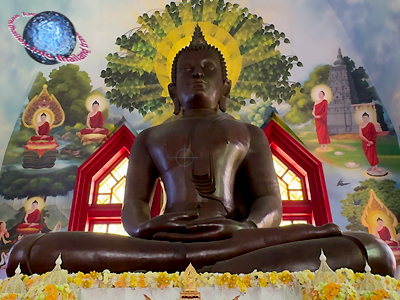 The bronze Phra Phutta Siri Rattana Mongkhon is the principal Buddha statue of Wat Sri Rattana Thammaram (fig.). Seated in the meditation pose, it has a lap width of ca. 8 metres and is a little over 12 metres tall.