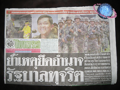 soldiers, and a close-up photo of General Sonthi Boonyaratglin, leader of