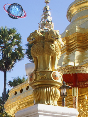 dhammachakka wheels with twenty-four spokes. Whereas the lions are considered to be