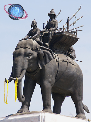 The Don Chedi War Elephant Memorial in the province of Kanchanaburi commemorates the 1593 Battle of Nong Sarai, in which King Naresuan the Great (fig.) defeated the Burmese Crown Prince in a duel fought on the back of war elephants (fig.).