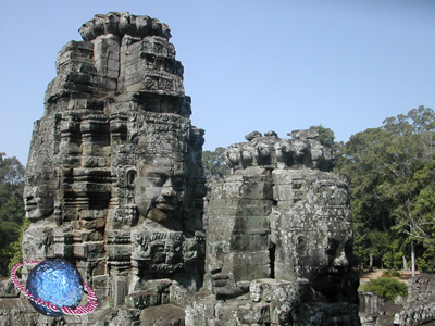 The ancient Khmer temple of Bayon in Angkor Thom, Cambodia, which was constructed during the reign of King Jayavarman VII (fig.).
