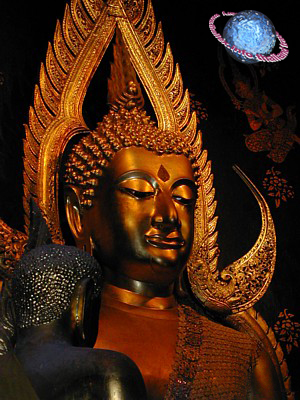 A Buddha image with a buddha eye or urna between the eyebrows, one of the signs of an enlightened being.