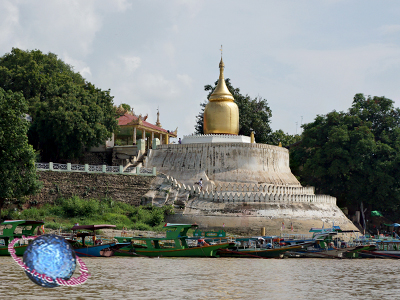 Bagan's Buphaya Gourd Pagoda (fig.) allegedly stood originally in the city's centre, but erosion by the Irrawaddy River (fig.) has over time eaten away large parts of the land and it now stands at the east bank of the river.