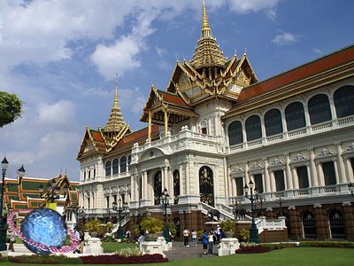 inherited the throne. Whereas large bronze statues of elephants welcome at the entrance welcome visitors, soldiers of the ceremonial unit of the King's Own Guard provide the honour guards.