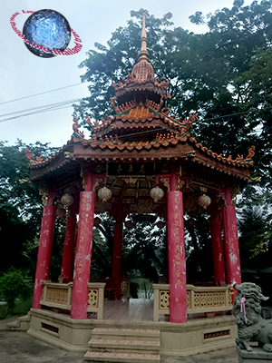 One of two Chinese Pavilions in Lumphini Park in Bangkok. This one has an octagonal base, while the other is square (fig.).