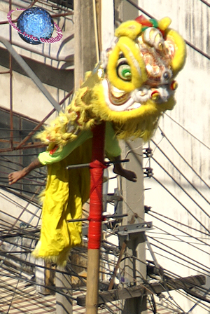 unrolled from the top, displaying good luck wishes to the onlookers.