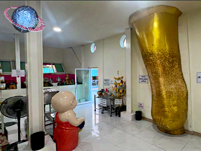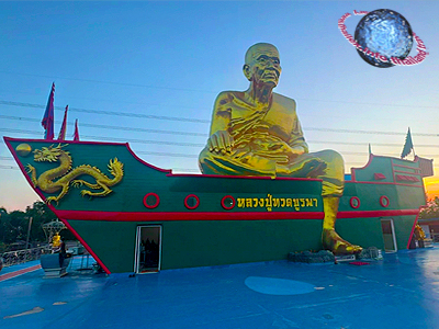 monk seated upon a large vessel shaped like a traditional Chinese junk (fig.),