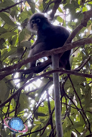 One individual from a group of Dusky Leaf Monkeys (fig.), a species also known as Spectacled Langurs or Spectacled Leaf Monkeys (fig.), that were spotted in some trees on the small peninsula of Railay in Krabi.