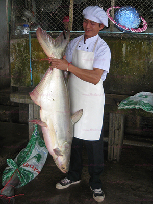 The Giant Catfish, allegedly the world’s largest known freshwater fish. It occurs in the lower half of the Mae Khong River (fig.) and is hence also referred to as Mae Khong Giant Catfish. It can weigh as much as 300 kilograms and measure up to 320 centimeters in length.