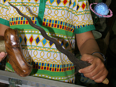 with its typical curved blade.