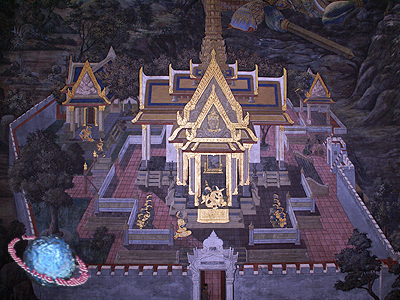A mural of the city of Lanka, as represented in the Thai Ramakien, where it is the abode of Totsakan (fig.).