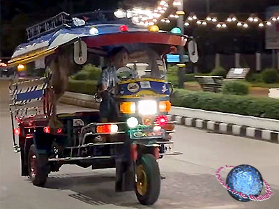 Tuktuks in Laos generally consists of a motorbike covered with a roof and with an extended part with two benches for passengers, similar to the rot saamloh skailaeb commonly in used in Loei (fig.).
