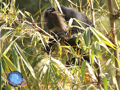 The Lion-tailed Macaque is overall dark brown to black and is characterized by a black hairless face surrounded by a silver-grey mane.