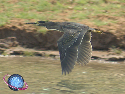 A Little Heron flies with its neck either partly or totally outstretched, though when seated, the bird's long neck is usually retracted in a hunched posture (fig.).