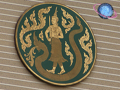 The logo of the Thai Ministry of Agriculture and Cooperatives, which depicts Phra Phirun (fig.), the Thai god of rain.