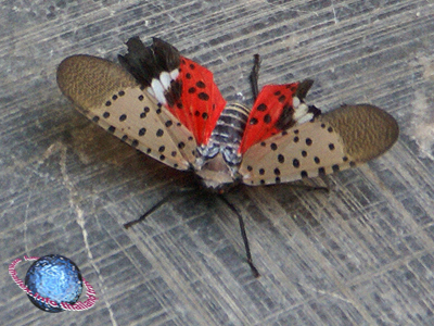 The Spotted Lanternfly or Lycorma Planthopper, i.e. a bug with the scientific name Lycorma delicatula, here spotted in Xi'an.