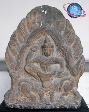 A klihb kanon prang antefix in sandstone with the picture of Ishana and the bull Nondi, from the province of Sri Saket (11th-12th century AD).