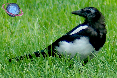 an iridescent metallic green-bluish to purplish sheen on the wings and tail,
