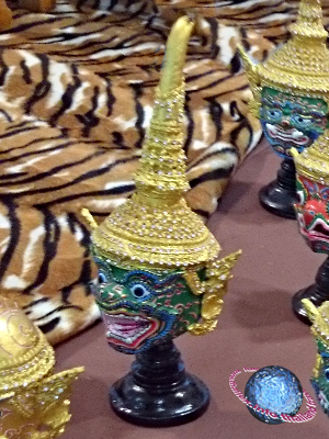 A miniature khon mask of Phali (fig.), a king of the monkeys from the Ramakien. He is a half-brother of Sukrihp (fig.) and he is also known as Vali.