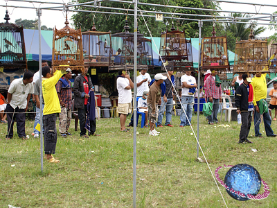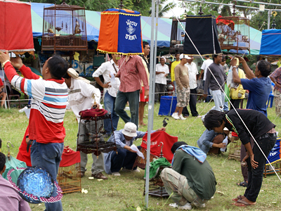 Preparations at a Red-whiskered Bulbuls (fig.) bird singing contest in Phuket.