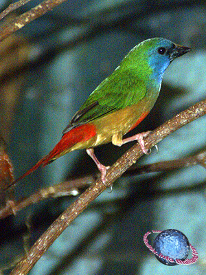 tall, and green above, with a blue face and throat, and orangey-buff below, with