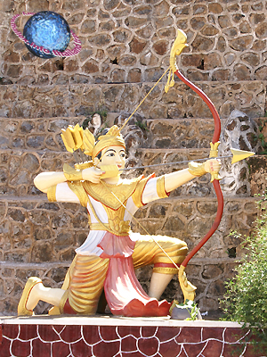 An effigy at the Pindaya Caves in Myanmar's Shan State (fig.) depicts Prince Kummabhaya shooting his arrow at the giant spider from legend.