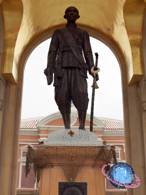 Statue of King Mongkhut, i.e. Rama IV (fig.), in front of the Saranrom Palace (fig.) in Bangkok, which was constructed during his reign.