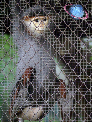 Red-shanked Douc Langurs in Bangkok Zoo, with its distinctive five colours, i.e. a gray back,