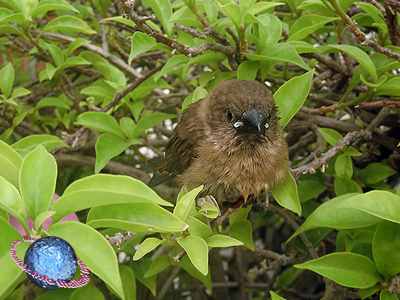 of the subspecies Lonchura punctulata topela (i.e. the nearby spotted parents