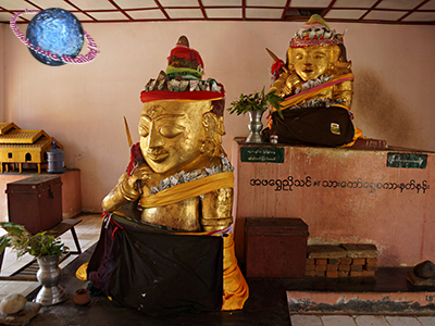 The compound of Shwezigon Phaya in Bagan features a shrine with a father and son warrior nat, whose names Shwe Nyothin and Shwe Sagar literally mean The Son Died One Day Before The Father, referring to the fate they each met in battle.