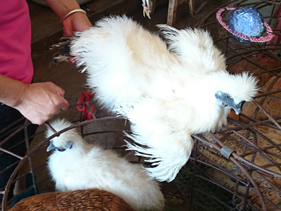 Silky or Silkie, a breed of domesticated chicken, with a unique, smooth and fluffy plumage, which is usually white and is said to feel like silk.