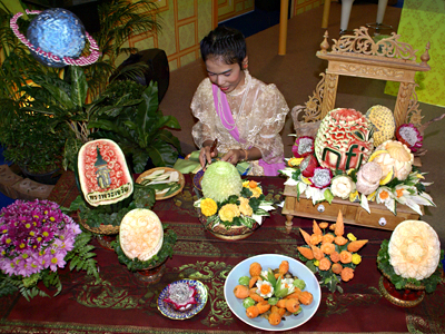 Thai women in the past, especially the ladies of the court, were trained in the art of vegetable (fig.) and fruit carving (fig.).