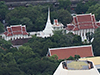 BTS Sky Train tracks in front of the temple. Also transliterated Wat Pathum Wanaram Ratchaworawihan, or similar.