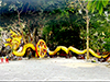Buddhism, where serpent beings function as liminal guardians connecting the natural landscape—water, caves, and forests—with the moral and spiritual order of the Buddhist world. The temple grounds also include cave shrines, devotional structures associated with the veneration of