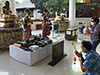 Thai. ‘Damn Egg’. Name of a young boy, who in iconography is often depicted similar to and thus reminiscent of Kumaanthong, yet Ai Khai is often depicted wearing dark sunglasses and with an army cap, or sometimes even dressed in a soldiers camouflage outfit, while being offered toy army objects, including weaponry and vehicles. He was a disciple of the highly venerated monk Luang Poo Thuad (fig.) and is also known as Tah Khai, i.e. ‘Egg Eyes’. His spirit, believed to protect the property of the land, is said to dwell in Wat Chedi Ai Khai (วัดเจดีย์ไอ้ไข่) in Nakhon Sri Thammarat. Ai Khai is a spiritual refuge for everyone who admires it and considered to be one of the temple boys known as dek wat. See also TRAVEL PICTURE.