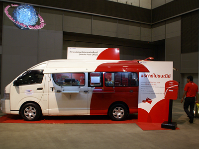 A mobile post office is one of the many services of the in 2003 privatized Thai Post, known as the Thailand Post Public Company Limited.