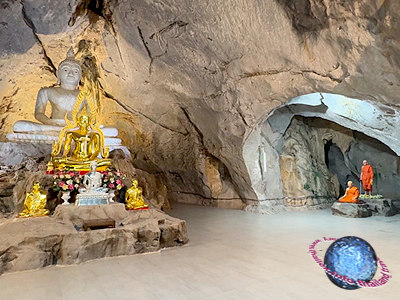 Tham Narai is a limestone cave within the temple grounds of Wat Khao Wong (fig.), that features ancient inscriptions in Pallava script, Old Mon, and Pali, dating back to approximately the 12th Buddhist century.
