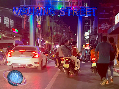 The entrance to Walking Street, a pedestrian avenue known for nightlife in Pattaya, located at the southern end of Pattaya Bay (fig.).