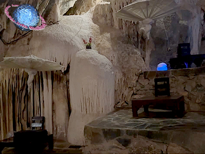 Wat Tham Khao Wong is a Buddhist temple in Nakhon Ratchasima, with a cave that is used by its monks for meditation. Their seats consist of low wooden platforms with a backrest and some have a klot (fig.).