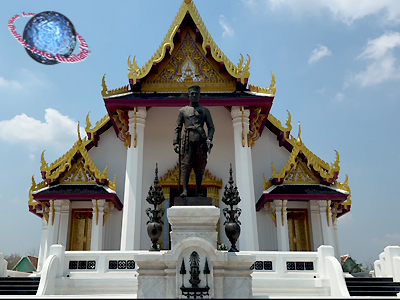In front of the ubosot, the ordination hall, stands a bronze statue of King Mongkhut, i.e. Rama IV (fig.), who in 1833 founded the Dhammayutika sect.