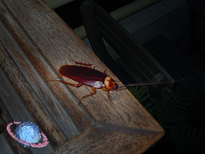 An Australian Cockroach, one of the species of cockroach commonly found in Thailand. In Thai their generic name is malaeng saab, meaning ‘musty insect’.