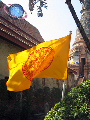 The dhammachakka is the symbol on the Thai Buddhist flag. In Thai this flag is known as thong phra phutta sahtsanah or thong thammachak.