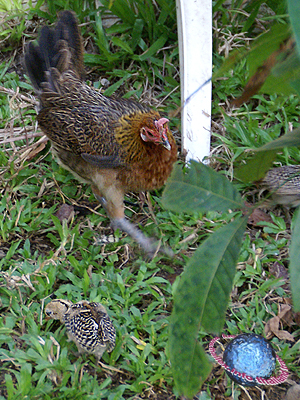 A female Red Junglefowl has a rather small comb and no fleshy wattles like the male (fig.), and her plumage is rather dull, designed for camouflage, as she alone looks after the eggs and chicks.