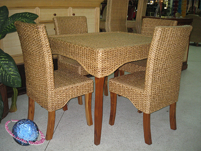 From the dried stems dining room chairs and tables, as well as sofas are produced, with frames usually made from mahogany or teak.