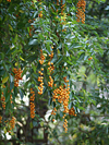 Initially the fruit has a thick yellow skin with large spikes (fig.),