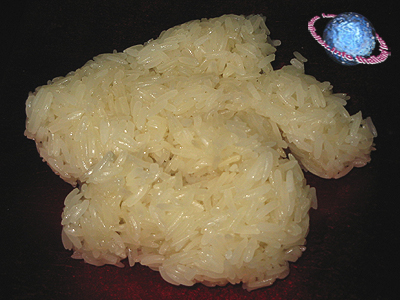 Sticky rice or khao niauw is meant to be steamed rather than boiled, after which it becomes waxy and darker in colour. Hence, it is also called waxy rice.