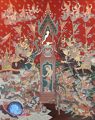 goddess, comes to the aid of the Buddha by wringing water from her long hair
