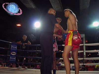 The mongkhon is a loop-shaped headband worn by muay thai boxers, prior to a fight. During the match it is usually removed.