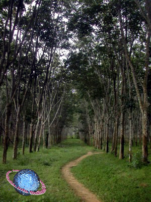 Rubber trees have a dense wide crown but are almost bare at the bottom where the rubber is tapped (fig.).