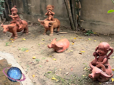 Tukkatah taeng suan is the Thai designation used for decorative garden figurines, for which often cartoon-like depictions of animals and children are used, the latter typically in traditional attire and frequently made of terracotta (fig.).